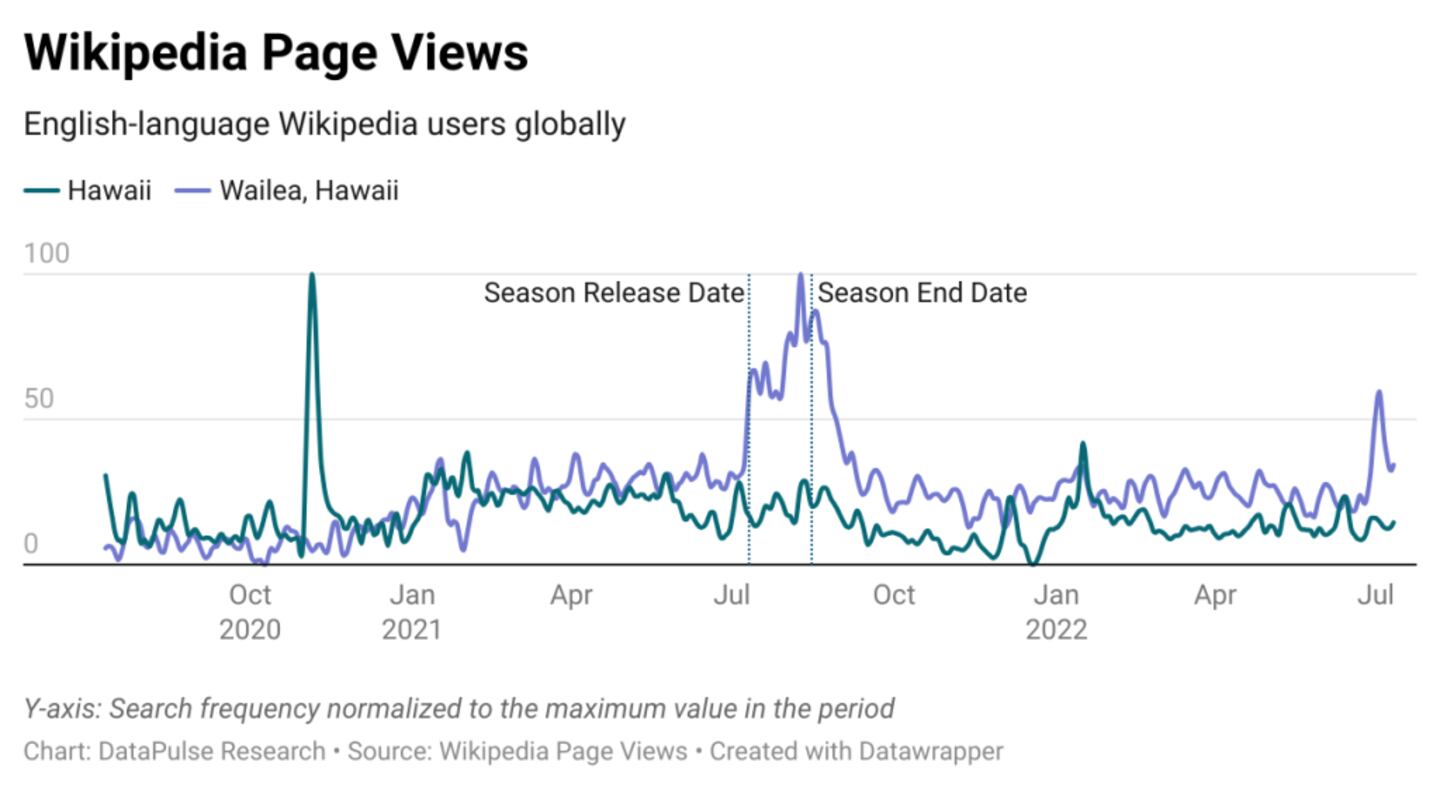 Interestingly, the number of daily Wikipedia page views for Wailea rose by 279% during the first season and remained at that level until the final episode aired.