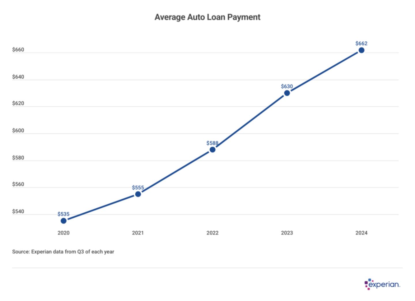 U.S. drivers owed $1.53 trillion on cars, motorcycles and other personal vehicles as of Q3 2024, according to Experian data, an increase of around $20 billion, or 1.5%, over the Q3 2023 balance.
