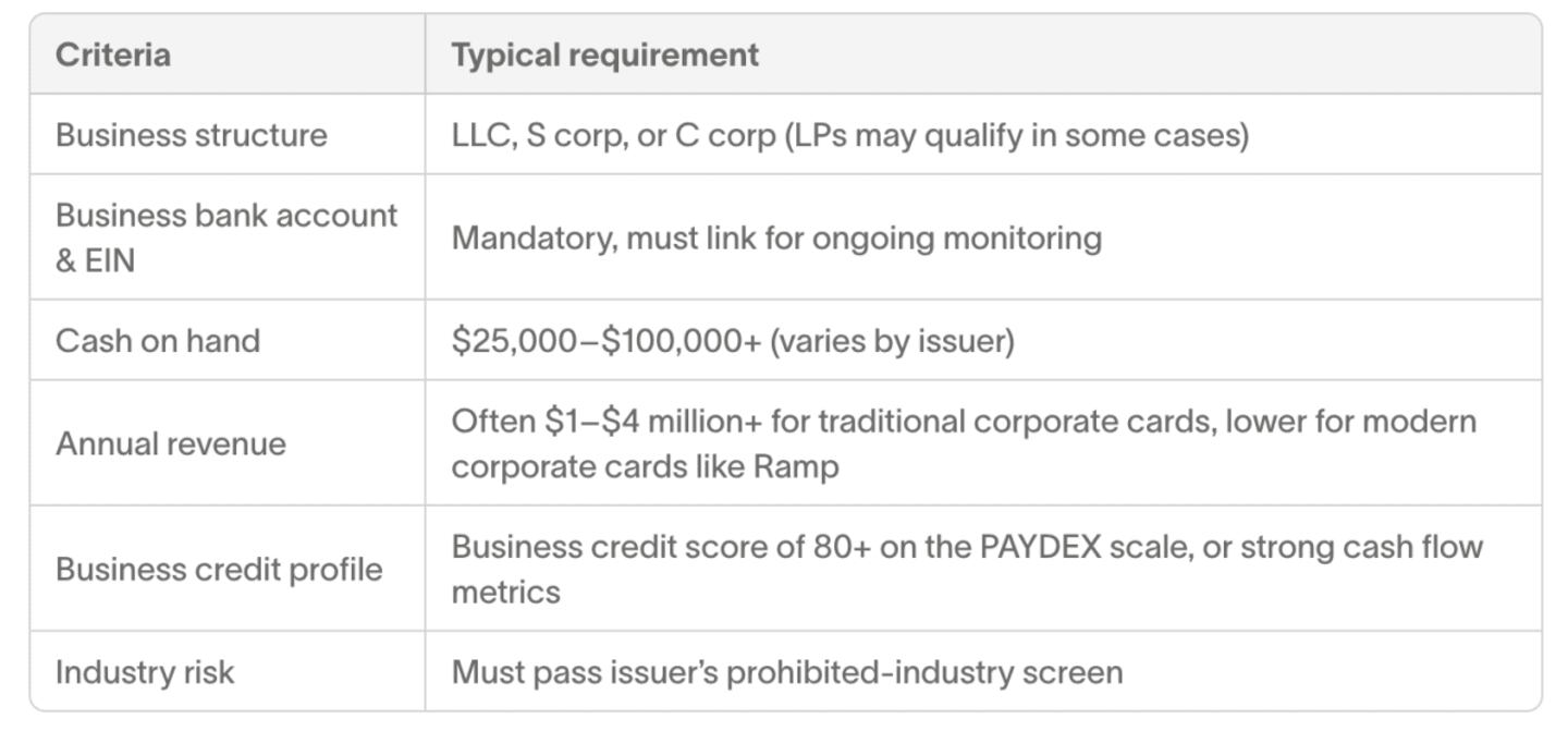 2. Healthy cash balances or revenue: Instead of pulling your personal credit, issuers look at factors like your business bank account balance and annual revenue to determine whether you qualify.
