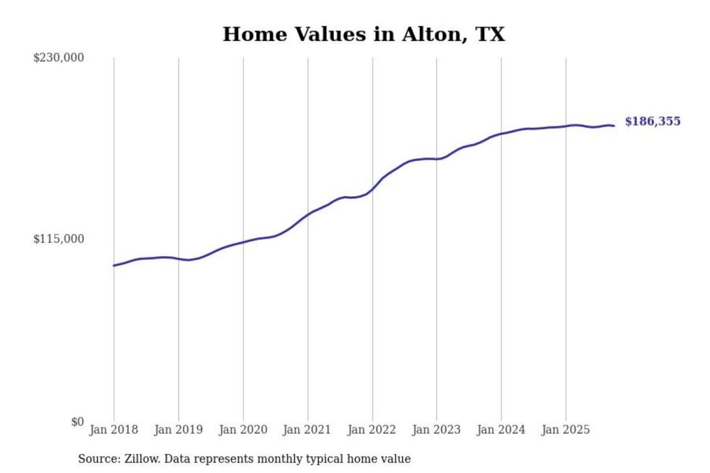 Stacker compiled a list of cities with the most expensive homes in the McAllen-Edinburg-Mission, TX metro area using data from Zillow. Charts show the monthly typical home value since January 2018.