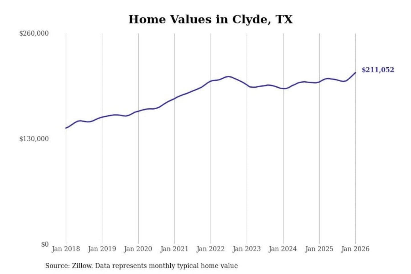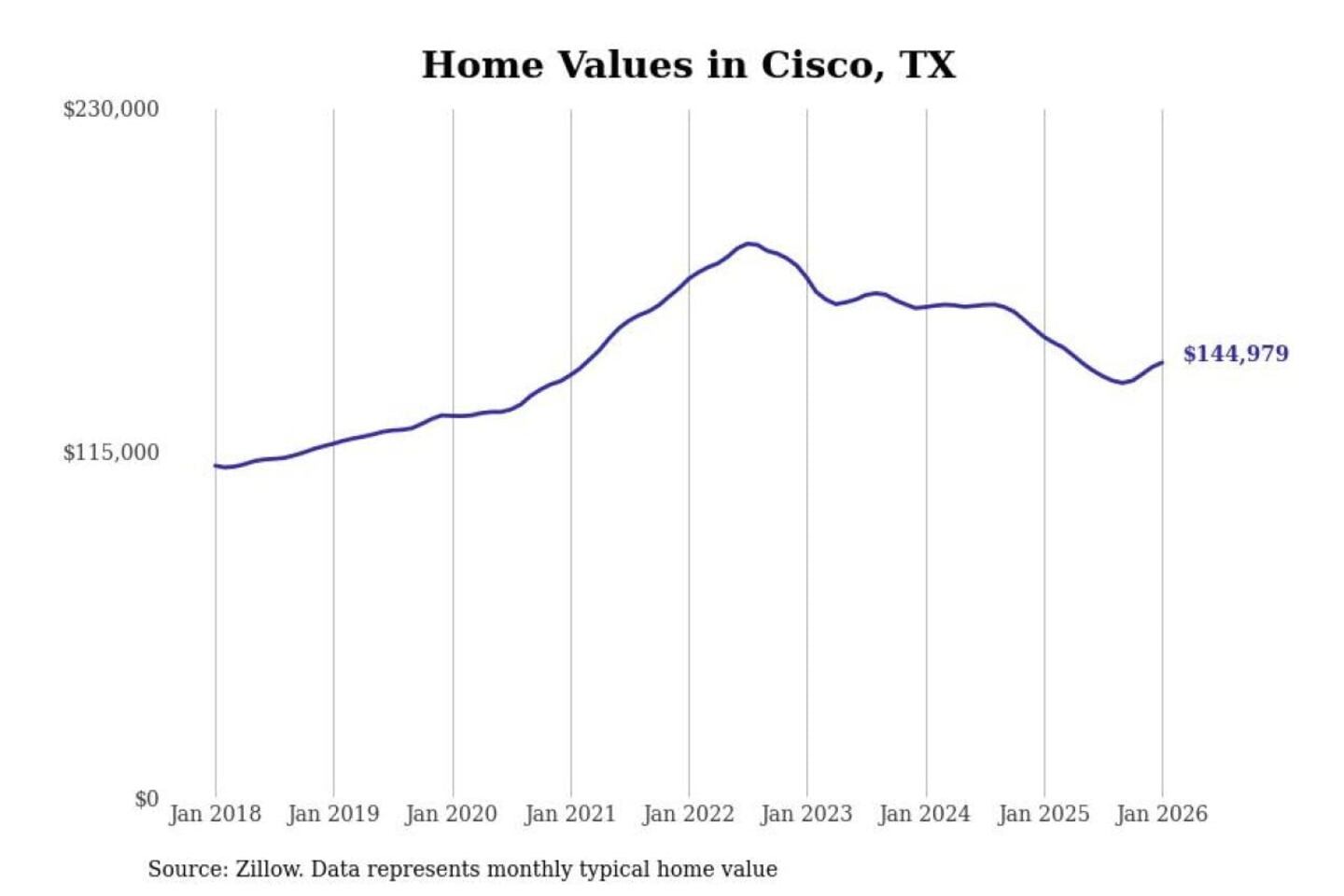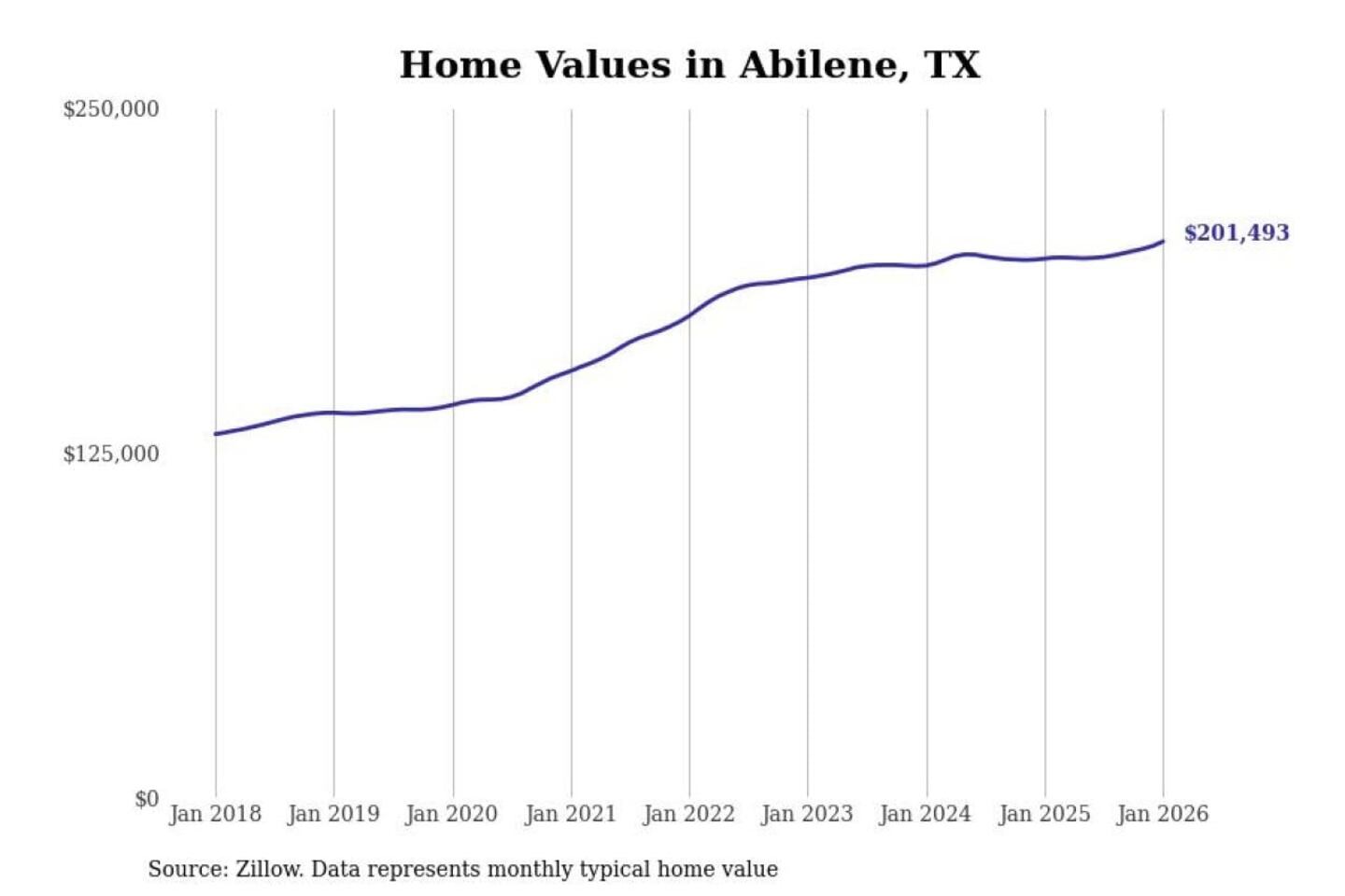 Stacker compiled a list of cities with the most expensive homes in the Abilene, TX metro area using data from Zillow. Charts show the monthly typical home value since January 2018.