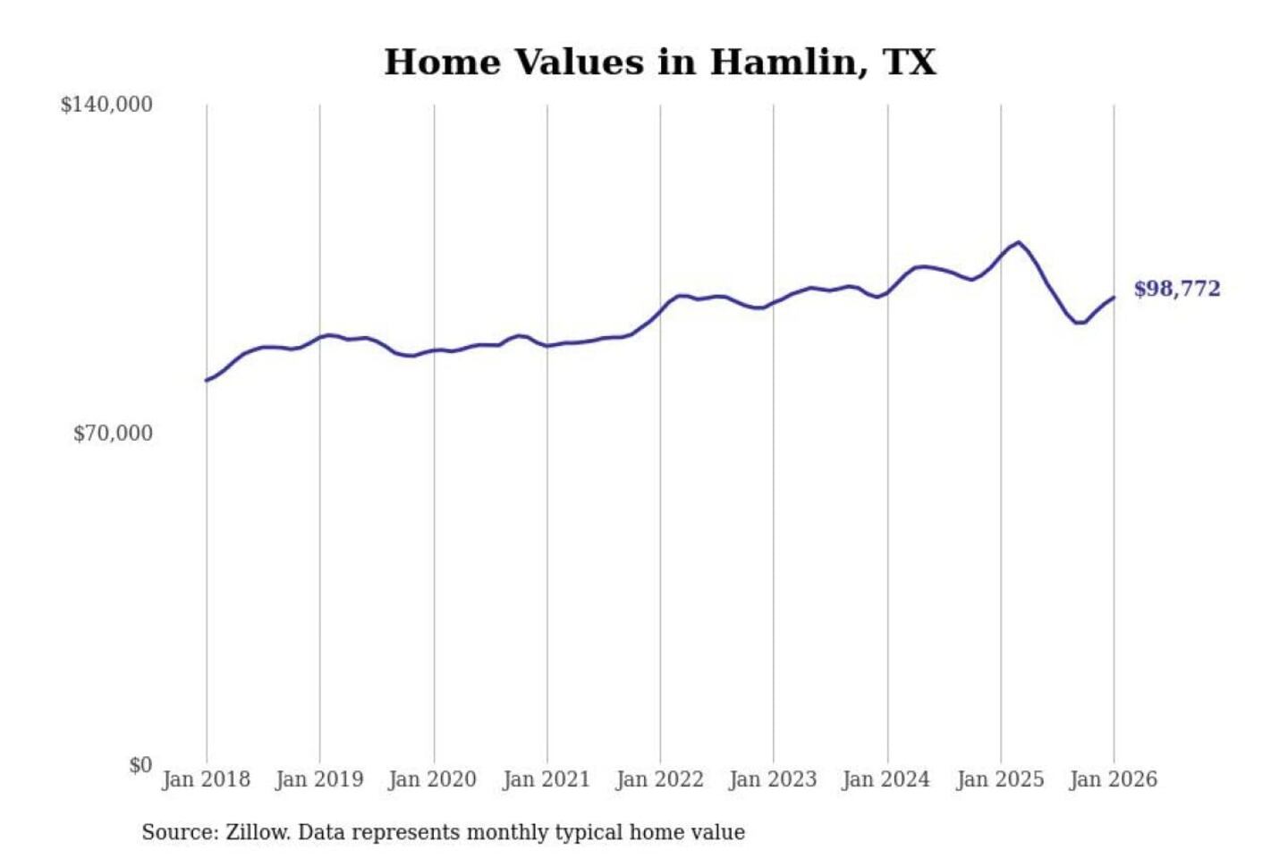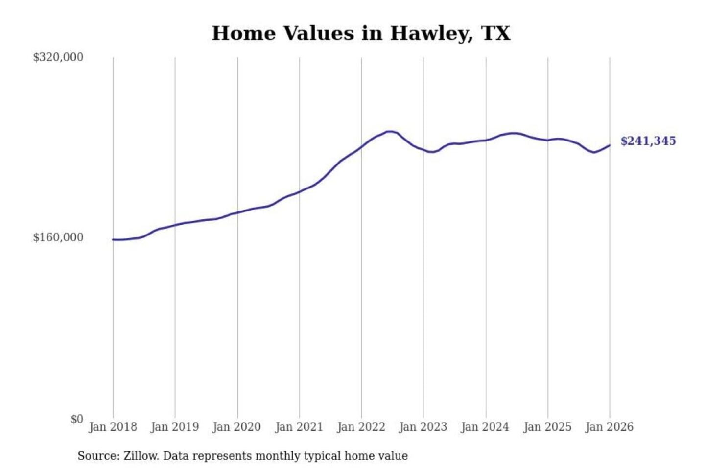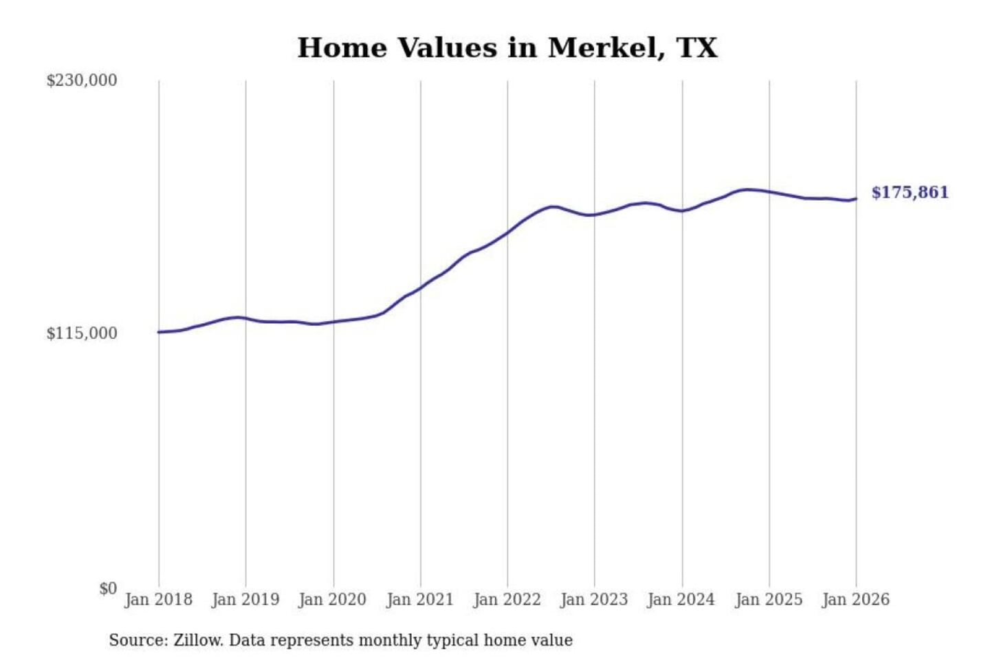 Stacker compiled a list of cities with the most expensive homes in the Abilene, TX metro area using data from Zillow. Charts show the monthly typical home value since January 2018.