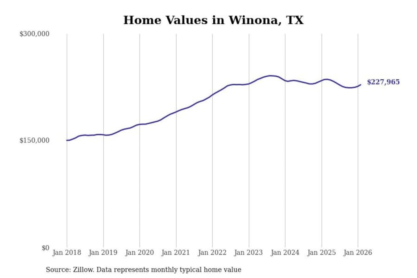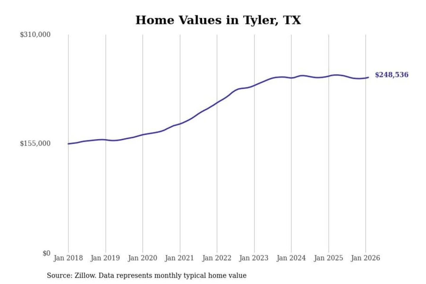 Stacker compiled a list of cities with the most expensive homes in the Tyler, TX metro area using data from Zillow. Charts show the monthly typical home value since January 2018.