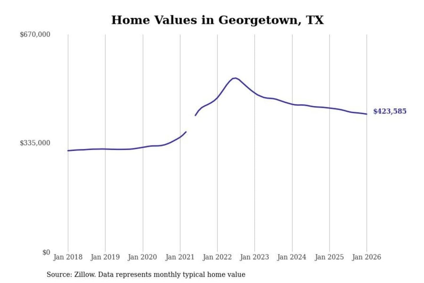 Stacker compiled a list of cities with the most expensive homes in the Austin-Round Rock-Georgetown, TX metro area using data from Zillow. Charts show the monthly typical home value since January 2018.