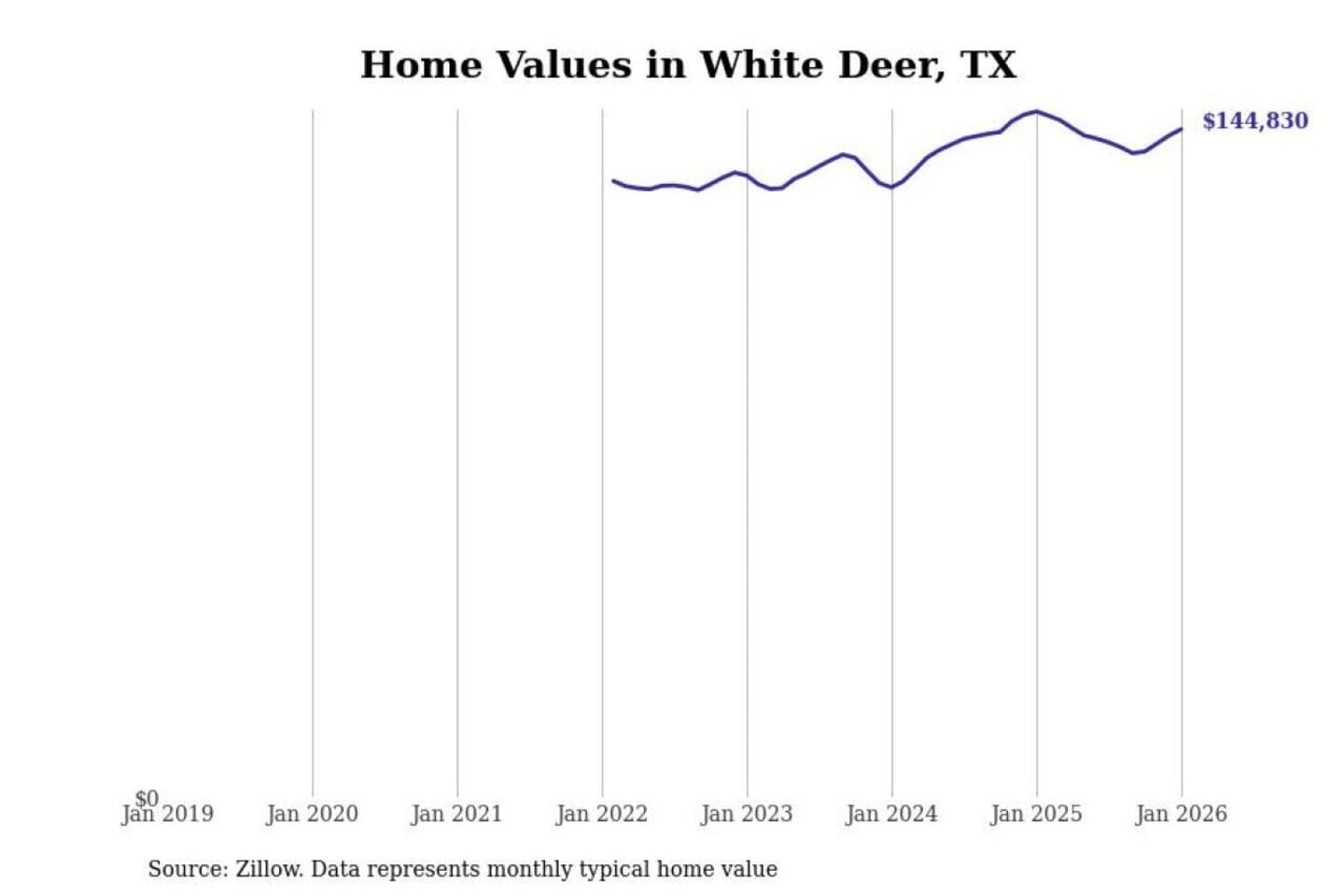 Stacker compiled a list of cities with the most expensive homes in the Amarillo, TX metro area using data from Zillow. Charts show the monthly typical home value since January 2018.