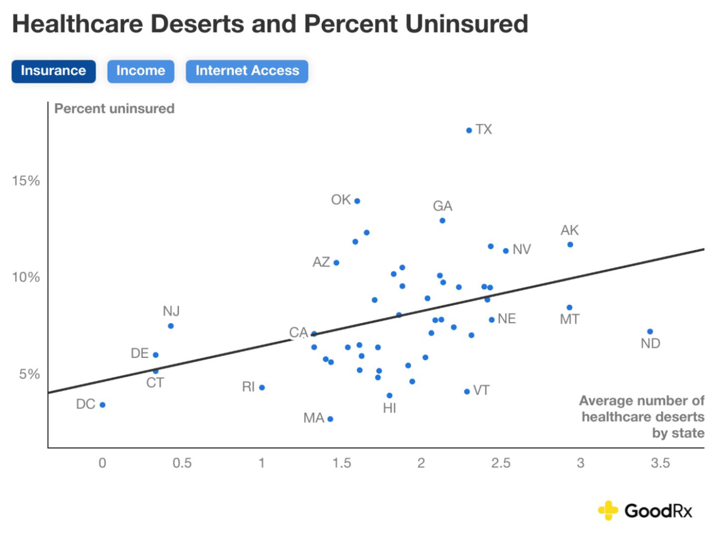 - New data from GoodRx Research shows that healthcare deserts continue to affect millions of people — roughly 1 in 3 Americans.