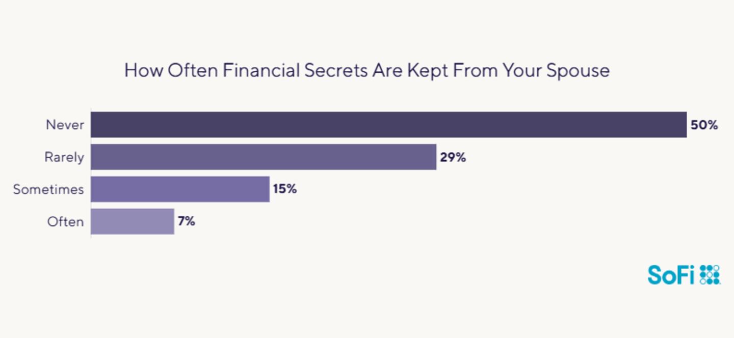 While establishing financial boundaries in a marriage is healthy, hiding or lying about financial issues can lead to money fights and breed mistrust over time. The good news is most couples we polled seem to be on the right track—nearly 80% said they rarely or never keep money secrets from their spouse.