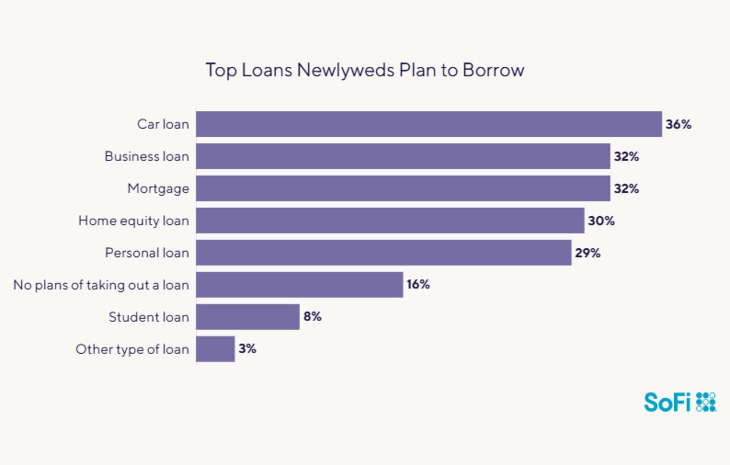 Nearly 60% of respondents had joint loans with their partners before they tied the knot—namely personal loans (28%), car loans (26%), and mortgages (25%). And 84% are planning to take out more together in the near future.