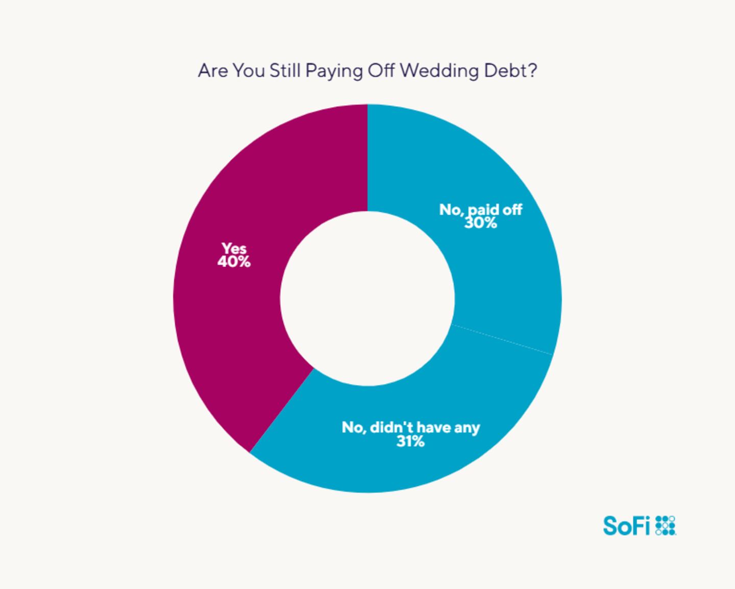 - 40% of couples are still paying off wedding debt.