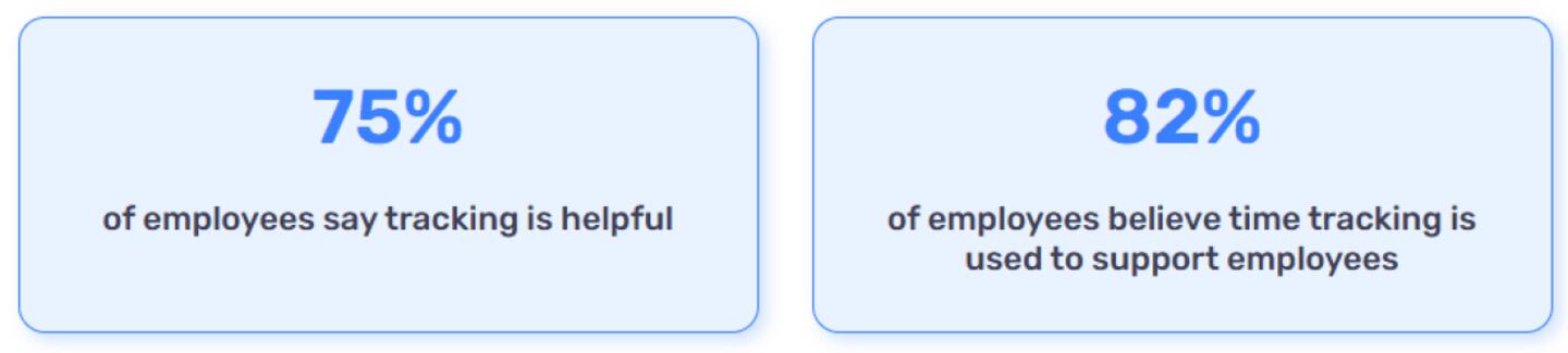 When implemented well, time tracking supports accountability and fairness. Most employees in this survey see real value in tracking. Three-quarters described their employer’s practices as helpful, with just 7% calling them frustrating. And a majority believe that their employer uses time tracking to support their employees rather than control them (82% vs. 58%).