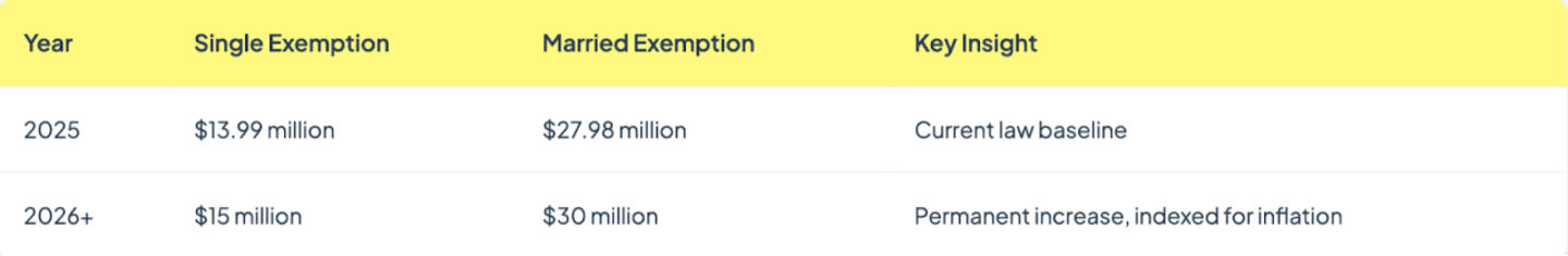 Without this bill, the exemption would have dropped to approximately $7 million per person in 2026, $14 million for a couple filing jointly.