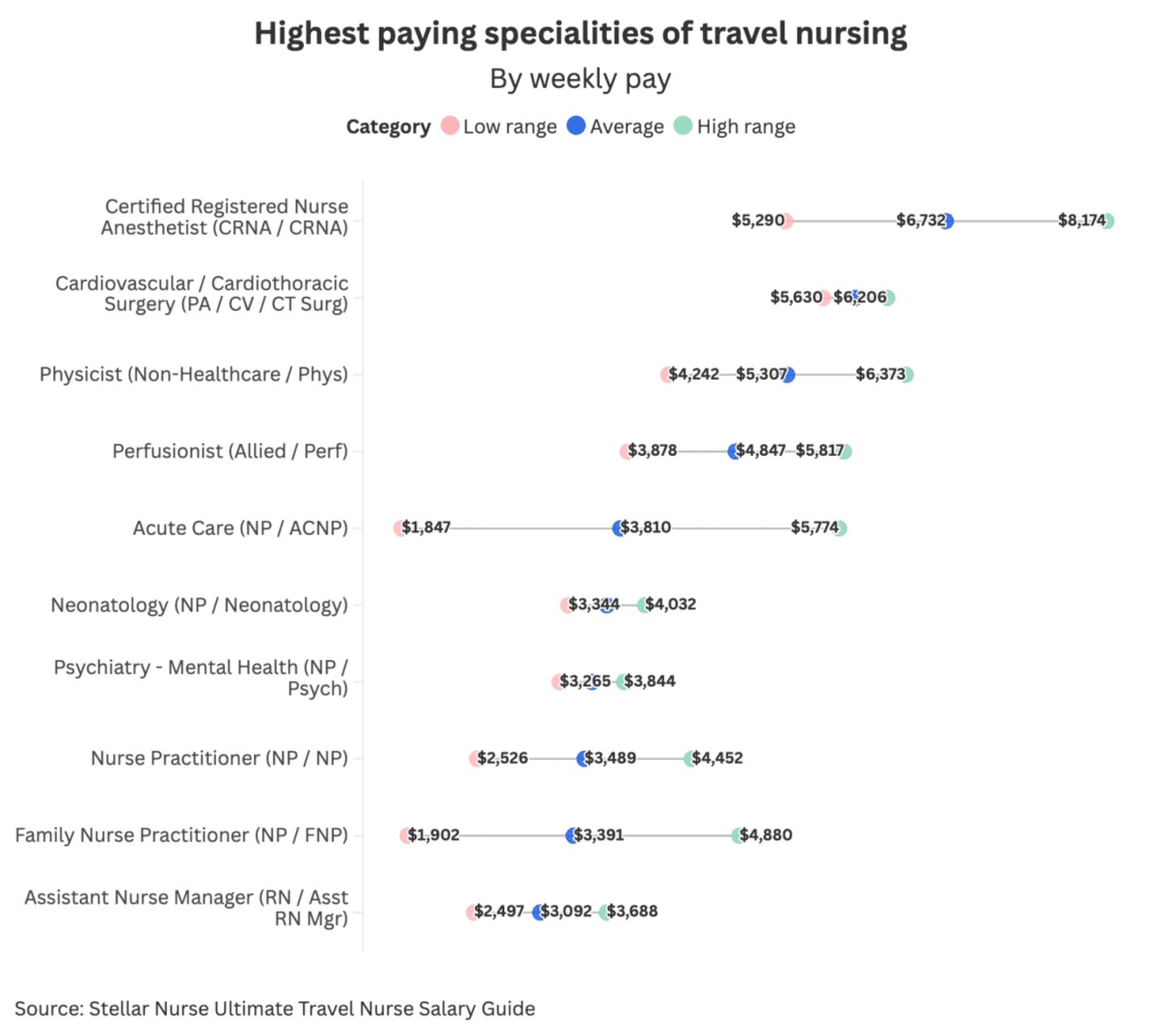 Other strong earners include perfusionists ($4,847) and acute care nurse practitioners (ACNPs), who average around $3,810 per week. These jobs usually require advanced certifications and deep experience in critical care or surgical environments.